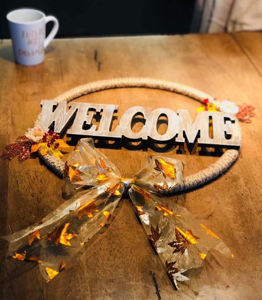 • Your favorite embellishments, I found a cute dupes for the welcome sign that I used on amazon (Linked Below) – go walk around your local craft / dollar store and pick up what screams out to you. This is the best part of making your own wreath you get to be as creative as you’d like!
